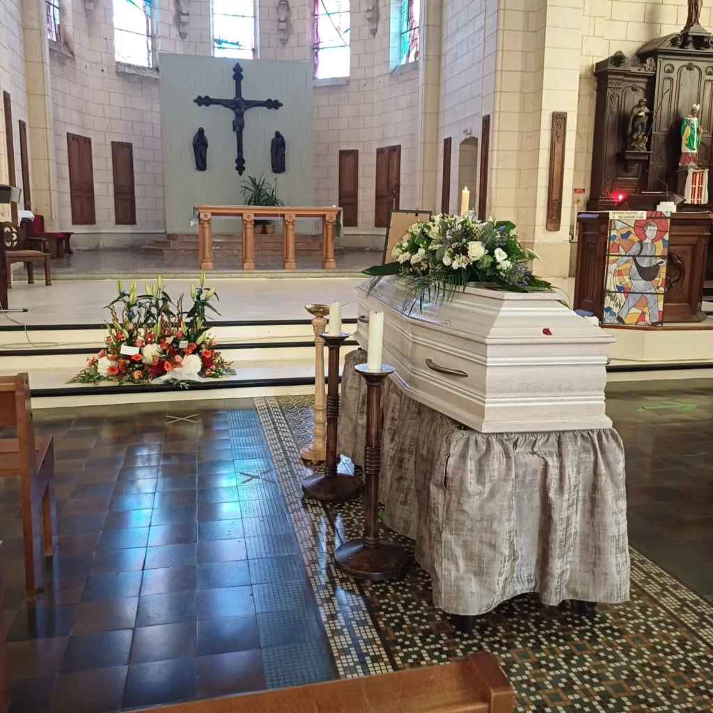 Elle est dirigée par un prêtre, se déroule à l’église et comprend généralement des prières et des rituels religieux. C’est la plus courante en France, car la majorité de la population est catholique.